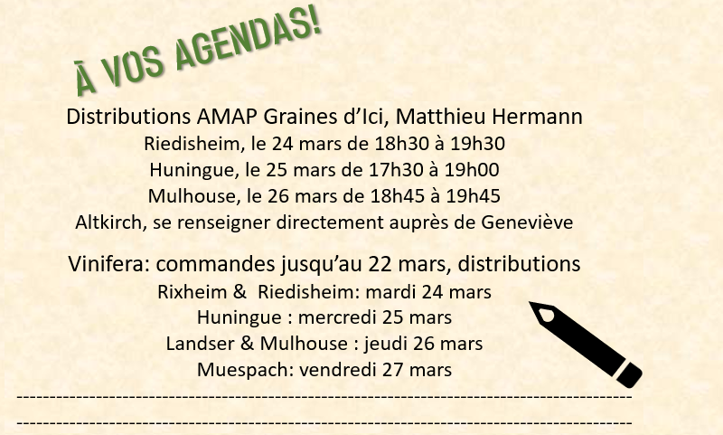 Certains producteurs ne viennent distribuer que deux ou trois fois par an. Ce serait dommage de laisser passer les dates de commandes et de distributions