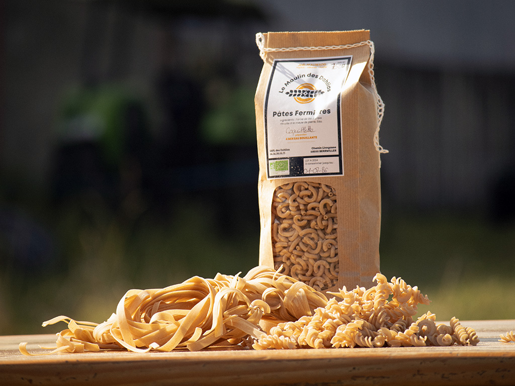 Depuis quelques années nous avons diversifié notre production et proposons maintenant différentes (blé, seigle et variétés anciennes) farines, ainsi que des pâtes fermières.